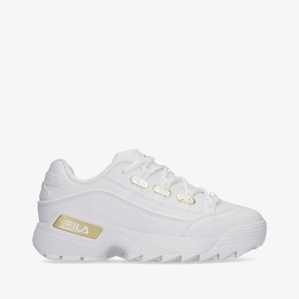 Postaw na ugly shoes marki Fila i uczyń swoją stylizację wyjątkową! Masywne sneakersy Hometown przyciągają wzrok cholewką w totalnie białej kolorystyce. Uzupełniają ją złote detale, ale też przeszycia i perforacje na przodzie. Dzięki miękkiej wyściółce z tkaniny każdy krok będzie przyjemnością. Istotnym punktem modelu jest gruba podeszwa w formie platformy. Jej dwuwarstwowa konstrukcja ze sprężystej pianki EVA i przyczepnej gumy gwarantuje odpowiednią stabilizację i pewność kroku. Kończy ją efektowny bieżnik z mocnymi żłobieniami.Wierzch: skóra syntetycznaWyściółka: materiał tekstylnyPodeszwa: pianka EVA, guma