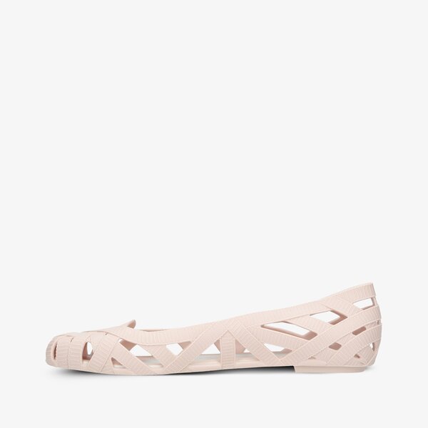 Baleriny Melissa to znakomity wybór, kiedy chcesz wyglądać stylowo i czuć się w pełni komfortowo. Wykonane zostały z innowacyjnego materiału Mel-Flex, który nie powoduje otarć i odparzeń. Ażurowa konstrukcja przypominająca zaplecioną wstążkę nadaje projektowi lekkości. Jasna kolorystyka znakomicie sprawdzi się w licznych zestawach modowych.Wierzch: tworzywo Mel-FlexWyściółka: tworzywo Mel-FlexPodeszwa: tworzywo Mel-Flex
