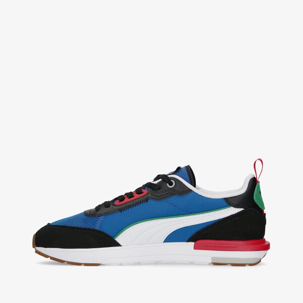 Marka Puma wie, jak robić wrażenie! Tym razem zachwyca sneakersami R22, które genialnie będą prezentować się w codziennych stylizacjach. Miks niebieskiego, czerwieni i czerni dopełnia biały branding. Cholewkę butów wykonano z solidnej skóry syntetycznej i tekstylnych paneli, dzięki czemu jest jednocześnie trwała i przewiewna. Sznurowadła umożliwiają indywidualne dopasowanie. Wyściełane miękko wnętrze podnosi poziom komfortu. Pod stopą znalazła się miękka wkładka SoftFoam, dzięki której każdy krok jest przyjemnością. Podeszwa z wyraźnym bieżnikiem na spodzie gwarantuje optymalną przyczepność do podłoża.Wierzch: skóra syntetyczna, materiał tekstylnyWyściółka: materiał tekstylnyWkładka: SoftFoamPodeszwa: tworzywo syntetyczne