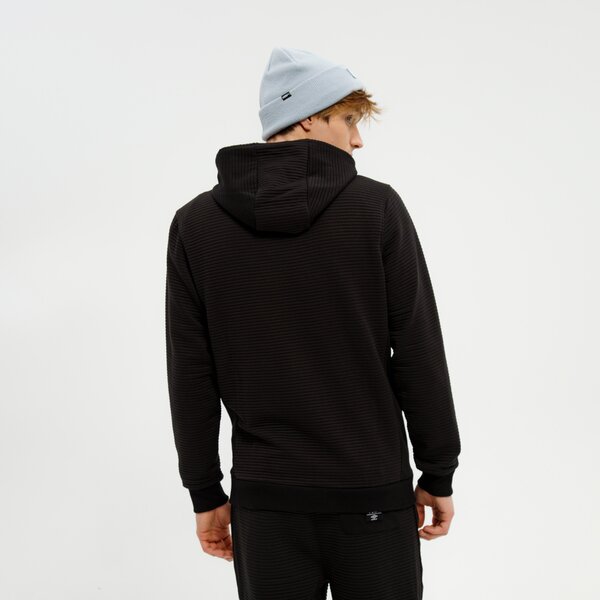 Niecodzienna tkanina, uniwersalna kolorystyka, kontrastujące detale i funkcjonale dodatki – to wszystko łączy w sobie bluza Hopkins brytyjskiego braku Umbro. Bluza wyposażona jest w ściągany sznurkami kaptur, biegnący przez cały przód zamek błyskawiczny, boczne kieszenie oraz ściągacze. Tkanina w poprzeczne prążki przyciąga uwagę, ale pozostała przy tym miękka i oddychająca. Jednolitą czerń uzupełniają żółte detale oraz biała aplikacja na dole bluzy.Materiał: 97% poliester, 3% elastanModel na zdjęciu ma 187 cm wzrostu i prezentuje produkt w rozmiarze M.